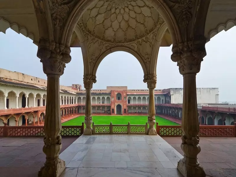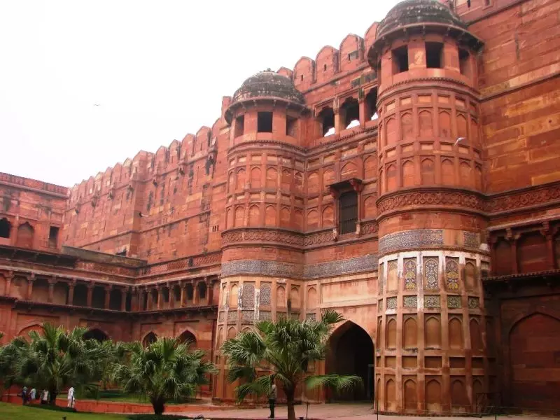این قلعه مستحکم از سنگ ماسه سرخ رنگ با دیوارهایی به طول ۵/۲ کیلومتر، شهر سلطنتی گورکانیان را در خود جای دادهاست. این منطقه شامل تعداد زیادی کاخ افسانهای، از جمله کاخ جهانگیرشاه و خاص محل که توسط شاه جهان ساخته شدهاست و شامل سرسرای تماشاگران مانند دیوان خاص و دو مسجد بسیار زیبا میشود.