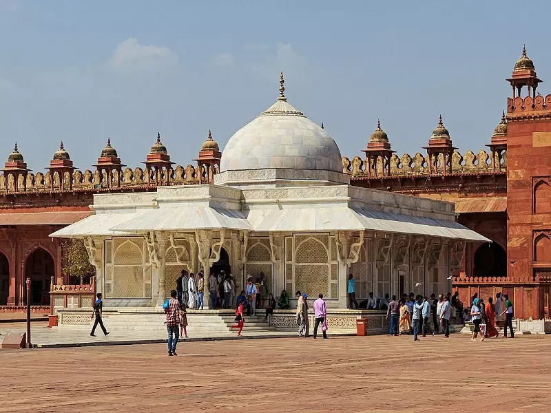مقبره شیخ سلیم: اساسا مقبره شیخ سلیم چیشتی، مهم ترین ساختمان موجود در این مجموعه کاخهای فاتح پور سیکری است و در بازه زمانی بین سالهای ۱۵۸۰ تا ۱۵۸۱ ساخته شده است. ساختمان این بنا از سنگ مرمر حکاکی شده ساخته شده است و یکی از بهترین نمونههای کنده کاری هنرمندانه سنگ در دوران قرون وسطای هند بهحساب میآید. معماری این بنا را میتوان در بین سبکهای معماری هندی و مغولی پیدا کرد. این بنا از همه جهات با سنگهای مرمری که پر از کنده کاریهای پیچیده هستند و جلیس (Jaalis) نامیده میشوند، پوشیده شده است. این مقبره متعلق به یک صوفی به نام سلیم چیشتی است که در کوهپایههای نزدیک شهر زندگی میکرده است. در طول دورانی که این شهر پر از سکنه بوده است، این مکان بهعنوان یکی از مراکز اصلی جریان صوفی گری در هندوستان مطرح بوده است.