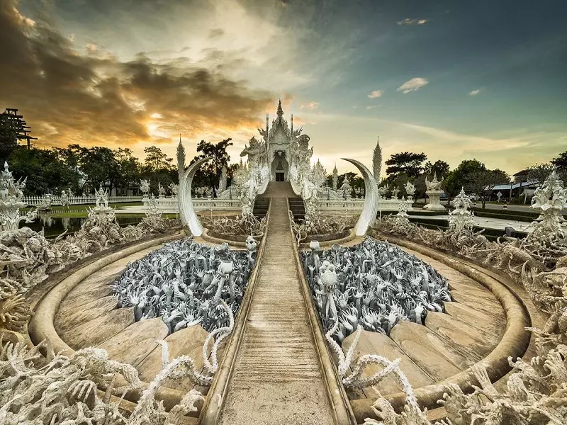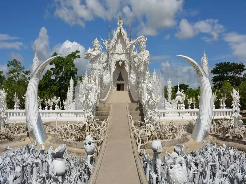 معبد وات رونگ خون (Wat Rong Khun) که در چیانگ رای قرار دارد با هر معبد دیگری در تایلند فرق دارد به طوری که ساختمان اصلی به رنگ سفید است و بعضی از اشیای به کار رفته در آن نیز شیشه ی سفید هستند. رنگ سفید نزد بودایی ها نماد پاکی است و خردمندی است. سال 2010 سیزدهمین سالی است که این مجموعه در حال ساخت است و هنوز تمام نشده است اما با این حال یکی از مناطق جذب گردشگر در تایلند است.