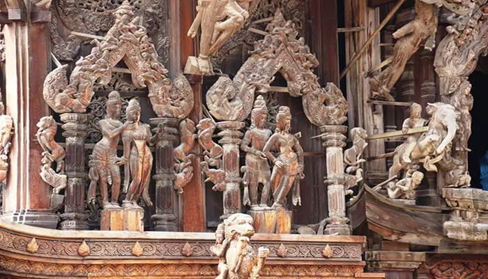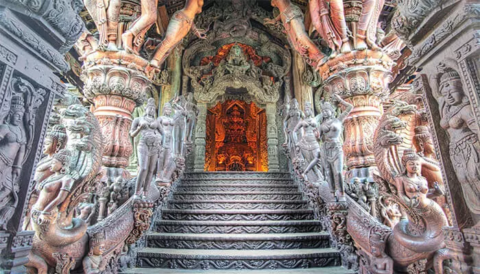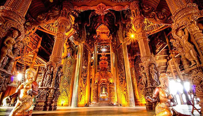 با فاصلهی اندکی از شمال مرکز پاتایا، معبد دلفریب حقیقت قرار دارد که با ساختاری بر لبهی دریا به همراه مناظری زیبا و مجسمههای بودا و هندو خودنمایی میکند. این بنای ۱۰۵ متری یکی از بهترین آثار ساخته شده از چوب به شمار میرود و منعکسکننده دیدگاه قدیم، دانش کهن، حکمت و فلسفه شرقی است. شوی دلفینها از جمله سرگرمیهای معروفی است که در این مکان اجرا میشود. از این مکان مقدس هر روز در ساعات ۸ تا ۱۸ میتوانید بازدید کنید.