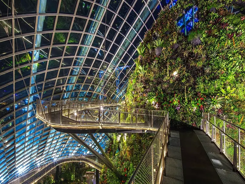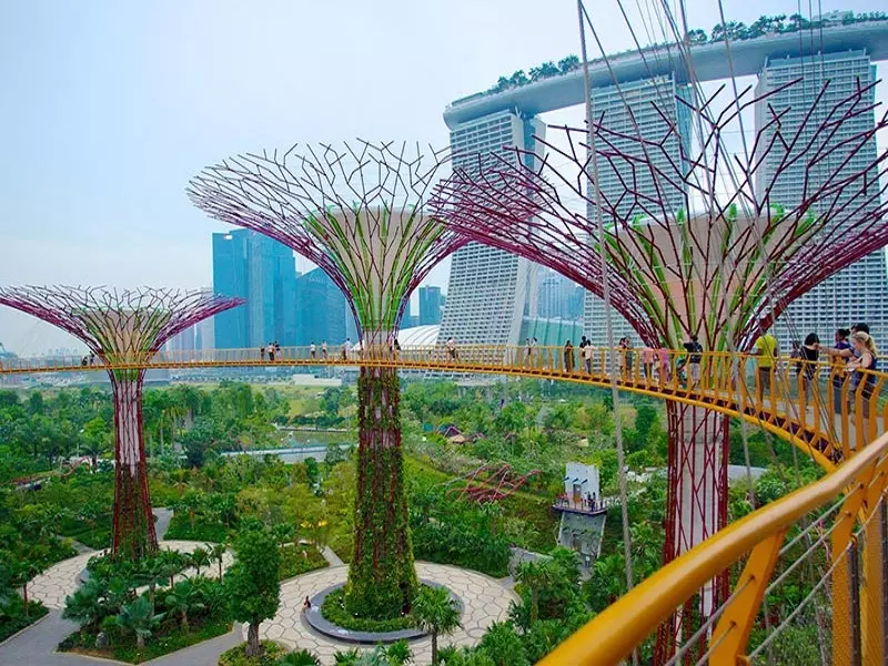 سرزمین عجایب طبیعی که با گنبدهای زیستی بزرگ، درخت‌های خارق‌العاده و مجسمه‌های حیرت‌آورش آدم را ساعت‌ها به دنیای دیگری می‌برد. سفر سبزتان از گنبد گل با آب و هوای مدیترانه‌ای شروع می‌شود، در جنگل ابر با آب و هوای استوایی کوهستانی ادامه پیدا می‌کند و با دیدن ابردرخت‌های ۲۵ متری که هر کدام یک باغ عمودی‌اند به اوج می‌رسد. پل زیبایی که دو ابر درخت را به هم وصل می‌کند و از رویش چشم‌اندازهای ژورنالی محشری از باغ‌ها، شهر سنگاپور و دریای چین پیدا است. باغ‌های کنار خلیج محبوب‌ترین و هیجان‌انگیزترین دیدنی‌های سنگاپور‌ هستند. باغ‌های خلیج اخیرا به جاذبه های توریستی سنگاپور اضافه شده‌اند، اما این موردی است که باغبان‌ها نمی خواهند دیدن آن را از دست بدهند.این باغ 3 قسمت است: خلیج مرکزی: که یک باغ با یک پیاده روی در اسکله است و در نهایت دو باغ دیگر را به هم متصل می‌کند، خلیج شرقی: که در مرحله‌ای که بخش‌ها تکمیل شده‌اند باز شده است و خلیج جنوبی: بزرگترین باغ و ویترین باغبانی گرمسیری است و شامل ساختارهای درخت‌ مانند تا ۵۰ متر ارتفاع است که بر چشم انداز باغ تسلط دارد.