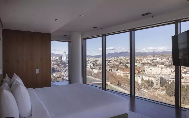 هتل رادیسون بلو ایوریا آسمان خراشی در تفلیس است که در قلب مرکز تجاری شهر جای گرفته و فاصله بسیار کمی با بافت تاریخی شهر دارد. رادیسون بلو ایوریا با دکوراسیون مینیمالیستی مدرنش در احاطه رودخانه زیبای “Mtkvari” و رشته کوه های بلند قرار گرفته و همین باعث شده مهمانان در طول اقامت خود از طبقات بالای هتل مناظر مسحورکننده ای را شاهد باشند. وقتی هتل رادیسون بلو ایوریا را انتخاب کنید، پا به بیرون از هتل که بگذارید خیابان همیشه بیدارِ روستاولی با رستوران های متعدد و مراکز خریدش از شما استقبال می کند.