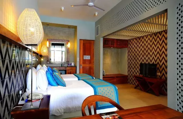 هتل سینمون بی توسط درختان نارگیل و چمن های سرسبز اطراف منطقه احاطه شده است. اتاق های این هتل معمولا بسیار بزرگ بوده و از نور طبیعی مناسبی برخوردار هستند. این اتاق ها همگی دارای یک بالکن اختصاصی نیز می باشند که چشم انداز جذابی رو به مناظر اطراف دارد. از دیگر امکانات اصلی هتل می توان به استخر روباز و همچنین شش رستوان و کافه اشاره کرد.