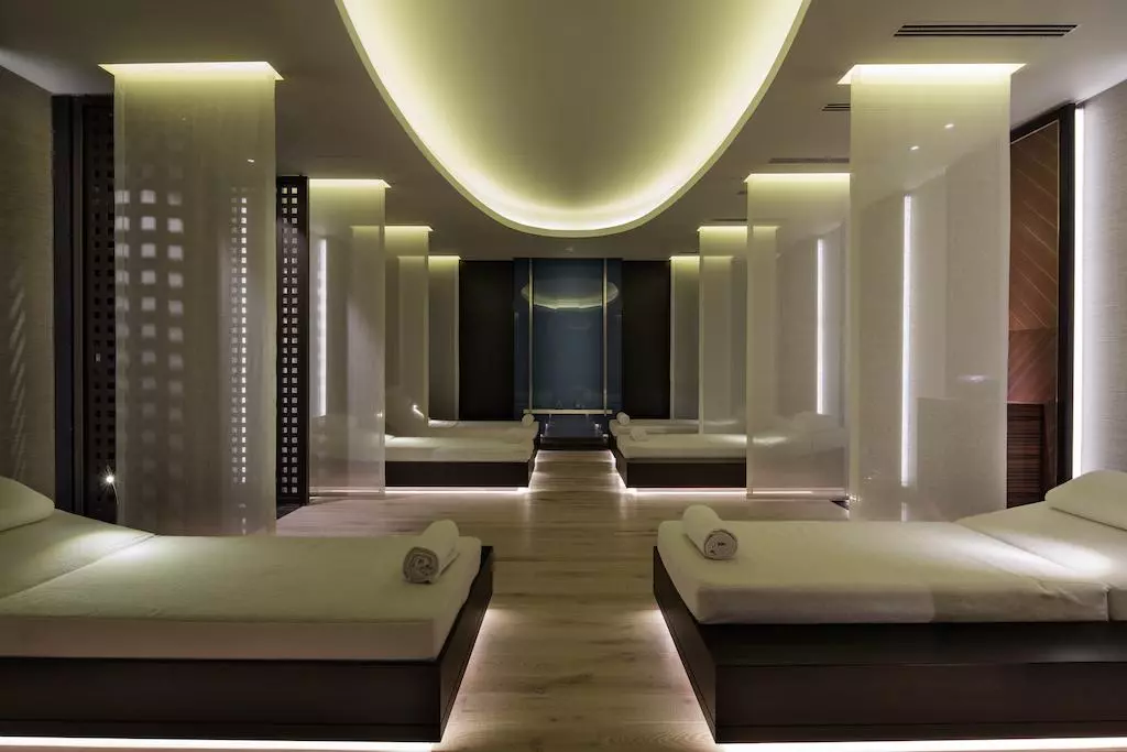 تسهیلات مرکز آبگرم: اسپا ی خصوصی وی آی پی با سوئیت مخصوص زوج ها، 5 سونا و سونا ی بخار، حمام آب درمانی 12 نفره، 15 اتاق مراقبتی-درمانی، 3 اتاق حمام و لوازم جدید بدنسازی.