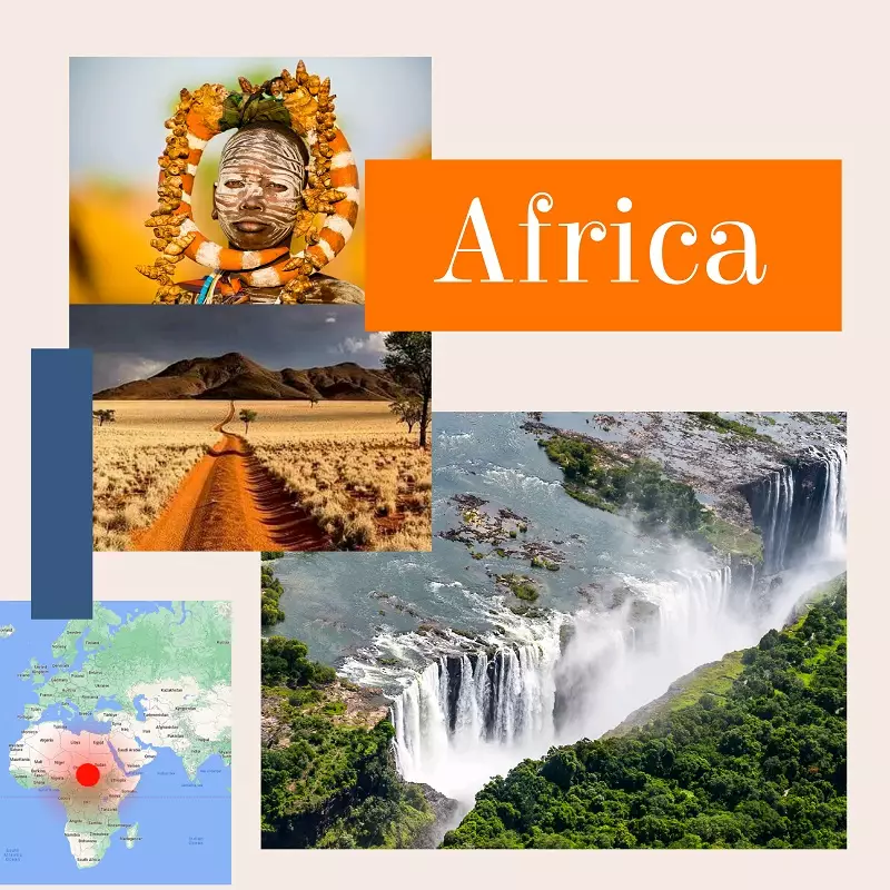 آفریقا حدود 1 میلیارد و 300 میلیون نفر جمعیت دارد و دارای 54 کشور است . حدود 7/1 جمعیت کنونی جهان در این قاره پهناور زندگی می کنند . بزرگ ترین کشور آن « الجزایر » و کوچک ترین کشور نیز « گامبیا » ( در خشکی ) است . در آفریقا بیش از 1000 زبان وجود دارد که مردم از طریق آن ها با یکدیگر ارتباط برقرار می کنند و جالب این جاست که در این قاره عجیب نیست اگر فردی علاوه بر زبان های رایج محلی ، به چند زبان اروپایی نیز صحبت کند !